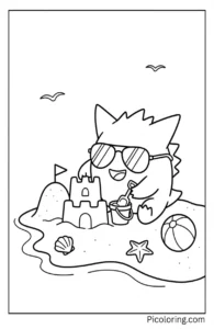 Gengar wearing sunglasses building a sandcastle
